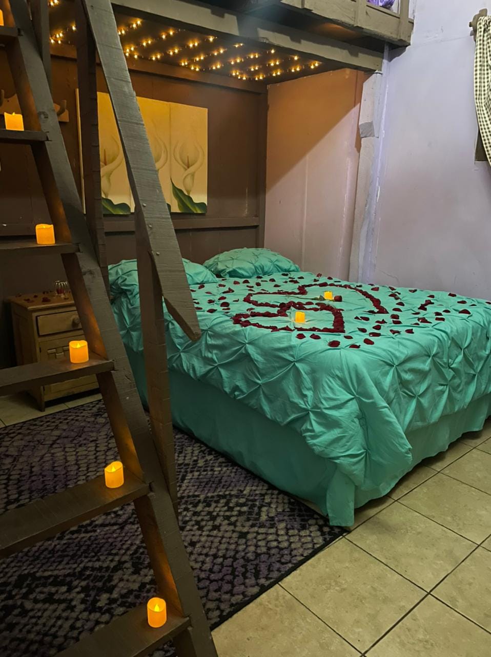 Sumergete en la calidez de esta cabaña diseñada para enamorados. Una gran cama te espera en un ambiente cálido y el susurro de la naturaleza. Disfruta de la calma, las luces tenues y el ambiente perfecto para compartir una noche inolvidable.
